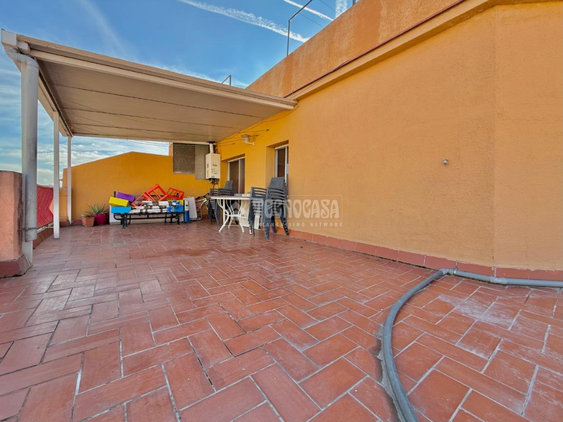 La joya de la vivienda es su impresionante terraza de 60 m², de las cuales 50 m² son completamente exteriores y 11,5 m² pertenecen a un cerramiento acristalado situado entre la cocina y la zona de almacén/lavandería, ideal como espacio multiuso durante todo el año.